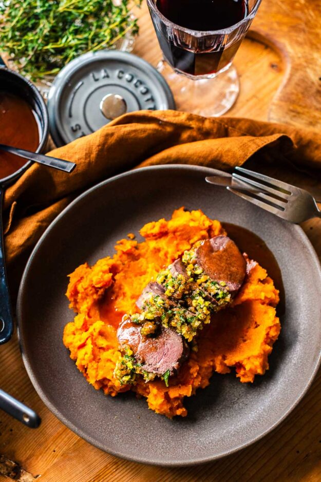 Die Feiertage stehen vor der Tür und ihr wollt eure Gäste mit einem eleganten Wintergericht beeindrucken, ohne stundenlang in der Küche zu stehen? Unser Rehrücken mit Pistazien-Kräuter-Kruste und Hagebutten-Rotweinsauce ist genau das Richtige! Dank MEATER, dem smarten Fleischthermometer, gelingt das Wildfleisch perfekt gegart – saftig in der Mitte, knusprig außen – und ihr könnt euch entspannt um eure Lieben kümmern.