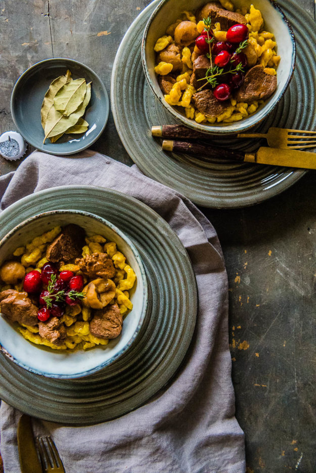 An kalten und verregneten Tagen brauch es Soulfood vom feinsten, oder wie seht ihr das? Ich liebe ja die gute alte Hausmannskost, denn so bin ich schließlich zum Kochen gekommen. Meiner Mutter habe ich bereits in frühen Jahre über die Schulter geschaut und hatte eine riesen Freude daran mich irgendwann selbst am Herd auszuprobieren. Heute mitgebracht aus der Familienküche habe ich ein köstliches Gulasch.