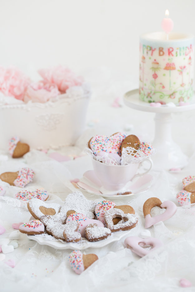 Toll, denn jetzt füllt sich unser Geburtstagstafel mit allerlei Köstlichkeiten und wir beginnen mit zuckersüßen Vollkorn Herzen.
