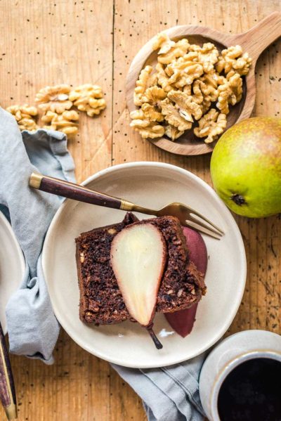 Und auch die pochierten Birnen eignen sich nicht nur für diesen Kastenkuchen, ihr könnt damit auch tolle Desserts zaubern. Bei uns auf dem Blog gibt es davon bereits zwei abwechslungsreiche Rezepte. Wie klingt z.B. eine pochierte Birne mit einer feinen Hippe auf Mascarponecreme oder die Variante mit Safran, Haselnüssen und einer samtigen Creme! Ihr merkt, wir sind total begeistert von pochierten Birnen! Wenn ihr für unser neustes Rezept nämlich feste Birnen verwendet, haben sie weiterhin eine tolle Konsistenz und der Kuchen zerfällt auf keinen Fall!
