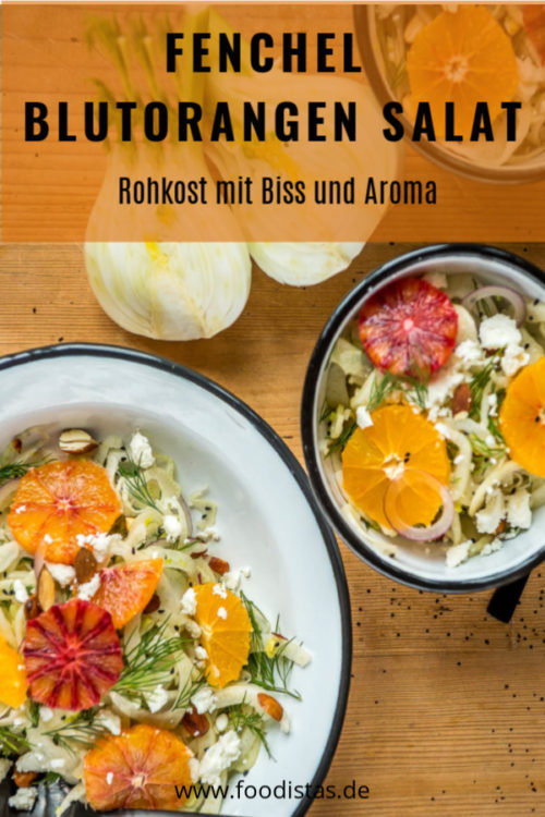 Ganz entzückt bin ich von meiner neusten Rohkostkreation, denn was die Aromen anbelangt ist dieser Salat wirklich kaum zu toppen. Die leicht herbe Blutorange harmoniert wunderbar zum dünn aufgeschnittenen Fenchel, aber auch der schwarze Kümmel macht diese Kreation wirklich ganz besonders. Ich kenne dieses Gewürz eigentlich nur vom Fladenbrot und das ist ein Skandal, denn der Geschmack passt zu vielen anderen Zutaten ganz hervorragend.