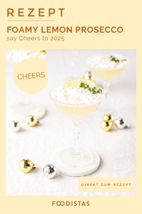 Aus diesem Grund möchten wir mit euch anstoßen. Tausend Dank auch euch, die ihr uns die Treue gehalten habt! Vielen Dank für all die Bilder von nachgekochten und nachgebackenen Rezepten. Es gab aber auch viele Drinks und Cocktails die euch Freude bereitet haben und darum wird unser letztes Rezept in diesem Jahr eben auch ein köstlicher Drink sein, unser Foamy Lemon Prosecco.