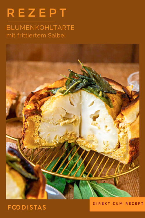 Diese gibt der Tarte ein angenehmes Umami, das perfekt mit dem milden Blumenkohl und dem knusprigen Mürbeteig harmoniert. Knoblauch und frische Salbeiblätter runden das Aroma ab. Nach dem Backen wird die Tarte goldbraun, cremig und aromatisch – ein Wohlfühlgericht, das sowohl als Hauptgericht als auch auf einem winterlichen Buffet oder zum Advent glänzt.