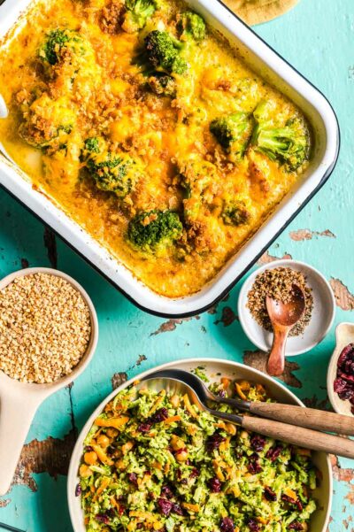 Gesunder Rohkostsalat mit Brokkoli und Brokkoli Gratin