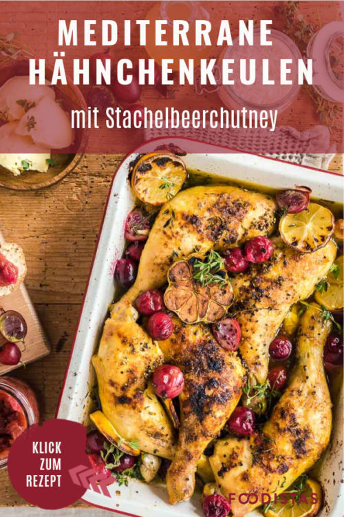 Dabei herausgekommen sind die knusprigen mediterranen Hähnchenschenkel mit Zitronen und noch mehr Stachelbeeren, Denn diese habe ich einfach auch noch mit in die Auflaufform gegeben. So braucht es nämlich keine Beilage mehr, wie vielleicht Kartoffeln, ein frisches Baguette mit dem Chutney und den im Ofen gebackenen Hähnchenschenkeln reicht nämlich völlig aus um ein sommerliches und vor allem schnelles Gericht auf den Tisch zu zaubern.