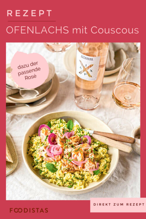 Nun aber noch einmal zum leckeren und vor allem schnell zubereiteten Rezept. Der Couscous ist für uns im Sommer die perfekte Beilage, denn man kann ihn super vielseitig mit den unterschiedlichsten Gewürzen zubereiten und bekommt dadurch immer wieder ein neues und vor allem köstliches Ergebnis. In unserem Fall sind es Olivenöl, glatte Petersilie, frische Minzblätter, Zitrone, Salz und Pfeffer. Denn der Star des heutigen Gerichtes ist auf jeden Fall der Lachs. Dieser wird nämlich mit einer Marinade aus Sojasauce, Harissa und Koriandersamen eingestrichen. So bereiten wir den drei Rosé Weinen die Bühne um ein perfekter Speisenbegleiter zu werden!