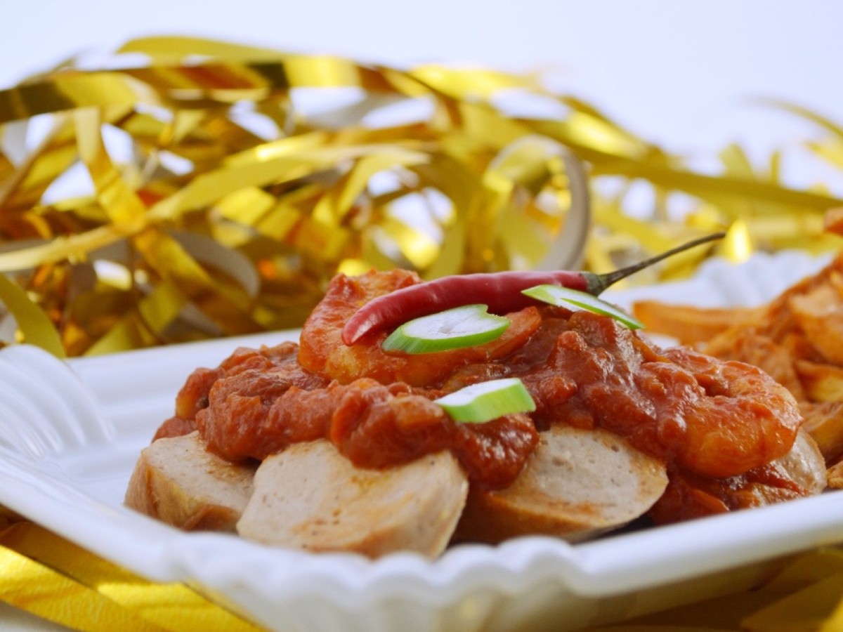 DetailsHier der erste Streich unseres Silvesterschmauses. Currywurst Deluxe eine leicht scharfe Currysauce zusammen mit Garnelen und Chili dazu Süßkartoffelfritten. Na wer bekommt da keinen Hunger.