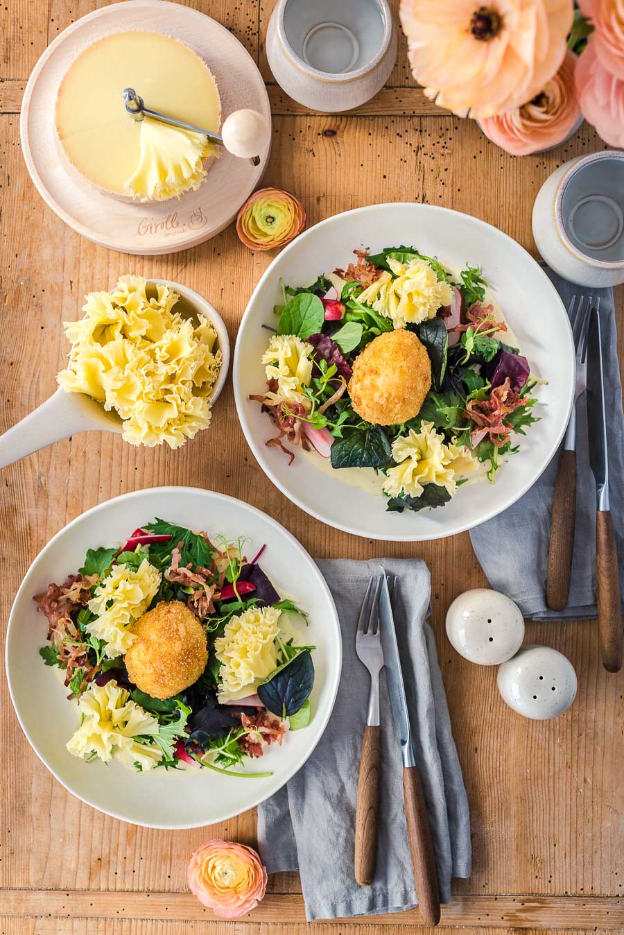 Unsere virtuelle Foodistas Ostertafel füllt sich von Tag zu Tag und ihr liebt den Tête de Moine AOP genauso wie wir, darüber freuen wir uns sehr. Darum haben wir nämlich direkt noch ein köstliches Rezept für euch ihn Gepäck, nicht nur perfekt für die anstehenden Osterfeiertage, nein auch sonst kann man sich diese kleinen Forellen Canapés mit Tête de Moine AOP und einer Creme aus Avocado und Meerrettich wunderbar schmecken lassen. Gebetet wird der Mönchskopfkäse auf runden Pumpernickeln. Pumpernickel ist ein Vollkornbrot aus Roggenschrot, das ursprünglich aus der westfälischen Küche stammt, es ist lange haltbar und wir lieben den leicht herben Geschmack der wunderbar mit der würzigen Note des Tête de Moine AOP harmoniert. Dazu eine Creme aus Frischkäse und reifer Avocado und schon geht das Schlemmen los.