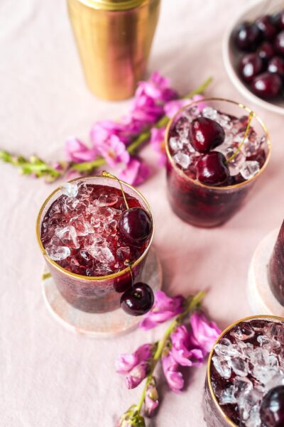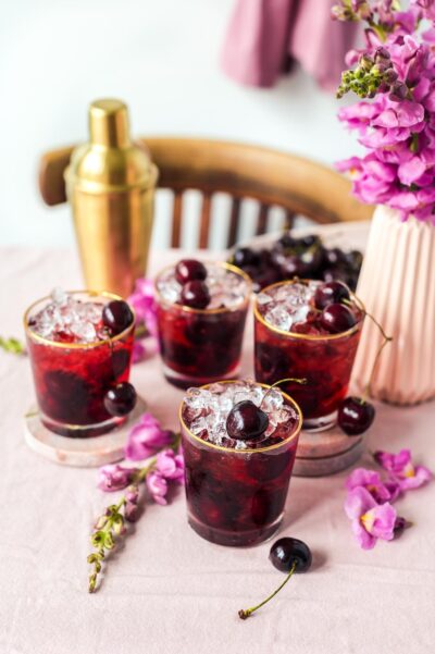 Für den Drink haben wir noch einen kleinen Tipp für euch: Wenn ihr einen Teil der Kirschen einfach vorher für ein paar Stunden einfriert, habt ihr super tolle Eiswürfel. Sie halten euren Drink kühl und können nach dem Genuss des Kaltgetränkes kurzerhand vernascht werden.