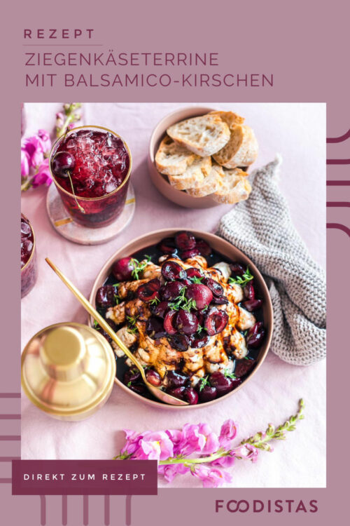 Und weil bei den Foodistas auch ein Snack nicht fehlen darf, haben wir ein beliebtes Käserezept wiederbelebt. Unsere Ziegenkäse-Terrine erfreut sich großer Beliebtheit, so einfach die Zubereitung, so genial im Geschmack, servieren wir sie heute mit einem Topping aus eingekochten Balsamico-Kirschen. Diese Liaison aus kräftigem Ziegenkäsearoma gepaart mit den süßen Balsamico-Zwiebeln könnte himmlischer nicht sein.