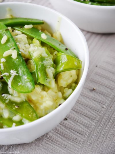 wie immer ein wundervolles Rezept. Vor allem Zuckererbsen, eins meiner Lieblingsgemüse, in der Kombination mit Risotto muss ich unbedingt mal ausprobieren. Letztens gab es bei mir ja die Kaiserschote auf ofengebackener Süßkartoffel, demnächst mit Kartoffelpüree, doch mit Risotto klingt auch so fein. Vielen Dank für die Inspiration.
