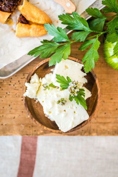 - Die Petersilie waschen und fein hacken. Zusammen mit dem zerkleinerten Feta Käse auf den Pide Schiffchen verteilen.