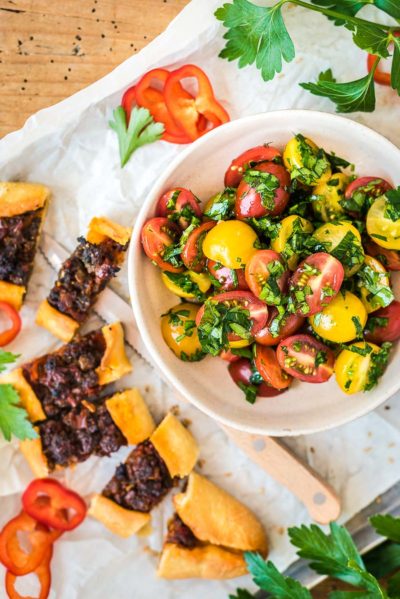 Heute ist es mal wieder soweit, wir verreisen mit euch auf dem heutigen Teller! Es geht in die Türkei, kulinarisch gesehen wirklich ein tolles Land, so viele exotische Gewürze, die aber mittlerweile auch in jeder gut sortierten Gewürzschublade hier in Deutschland zu finden sind. Es gibt also heute Pide, einen salzigen Hefeteig der zu einem Schiffchen geformt wird und den man eigentlich nach Herzenslust und ‑laune belegen kann. In unserem Fall ist Lammhackfleisch mit einer Sauce aus gerösteter Paprika zum Einsatz gekommen. Dazu gibt es die besten sonnengereiften Tomaten, am liebsten natürlich aus dem Garten und mehr braucht es für ein aromatisches Essen auch schon gar nicht mehr!