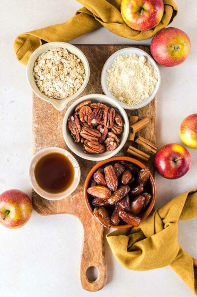 - Die Haferflocken, Pekannüsse, Mandelmehl, Zimt und Salz in einer Küchenmaschine fein zermahlen.