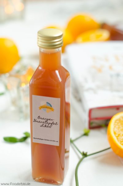 Vielleicht habt ihr den Bildern schon entnommen was unser Geschenk für drei von euch sein wird. Ihr wisst wie gerne wir durch guten Lesestoff in der Foodistas Bücherlounge schmökern und darum darf ein Buch einfach nicht fehlen. Ihr bekommt ein ganz besonders tolles Buch zweier lieber Bloggerkolleginnen. New York Christmas von Lisa Nieschlag und Julia Cawley katapultiert euch im Nu in die weiße Weihnacht und lässt das Fernweh-Herz höher schlagen. Mit vielen liebevoll fotografierten Bildern und tollen Rezepten rufen die beiden genau das Gefühl des Wohlbehagens hervor was für uns den Winter ausmacht. Das tolle Buch ist jedoch noch nicht alles, denn wir möchten das Geschenk bzw. den Gewinn noch ein bisschen persönlicher gestalten. Da wir vier Foodistas immer wieder gerne zusammen kommen um auf das Leben oder andere tolle Gelegenheiten anzustoßen und ihr wisst ja vielleicht wie prall gefüllt die Kategorie Drinks hier auf dem Blog bereits ist, möchten wir euch noch ein kleines Präsent in Form eines Orangen-Granatapfel-Likörs in das Paket packen. Wir möchten also quasi mit den Gewinnern anstoßen und liefern gleich den nötigen Likör dazu.